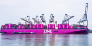 ONE được thành lập dưới dạng Liên doanh giữa NYL, MOL và K Line. Hãng tàu ONE quyết định sơn tất cả các tàu và thiết bị container mới hạ thuỷ bằng màu đỏ tía, điều này không những bắt mắt và giúp khách hàng dễ nhận biết. Và nguồn gốc của màu đỏ tía này là cảm hứng từ những cây hoa anh đào ở Nhật Bản – nơi đặt trụ sở của ba công ty mẹ.